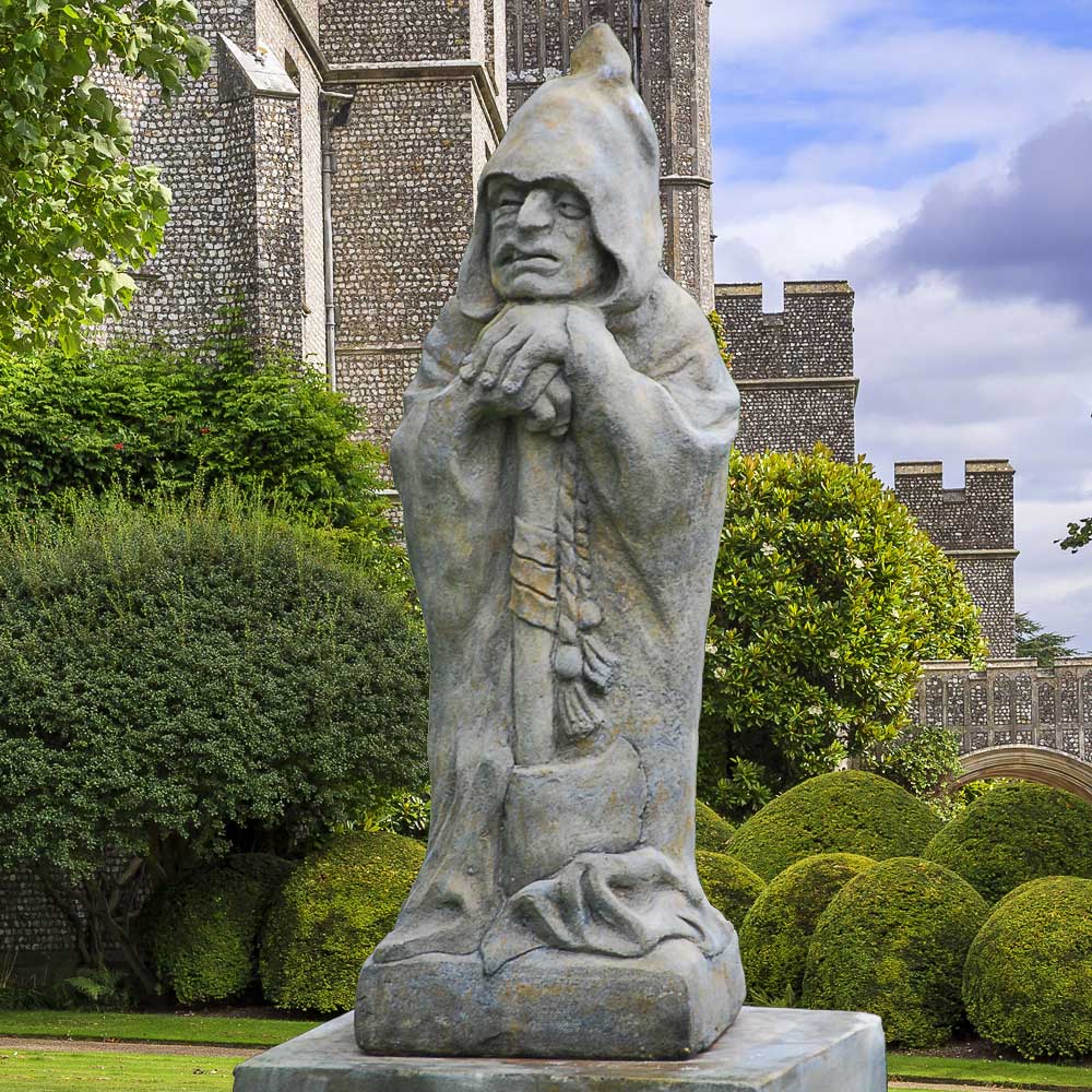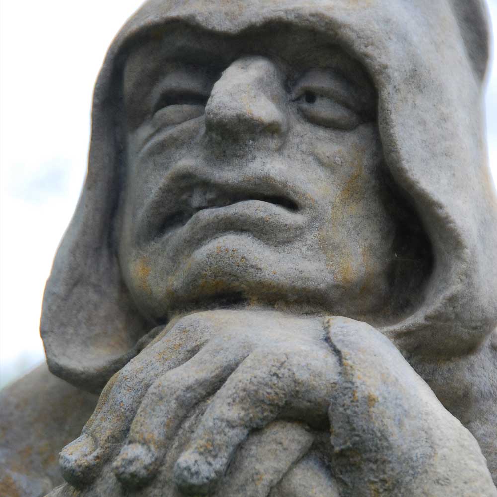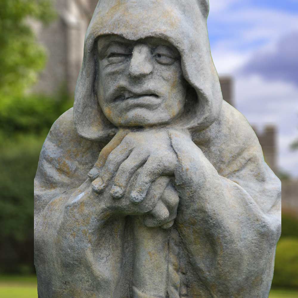 Geheimnisvoller Kobold als Gartenfigur aus Stein